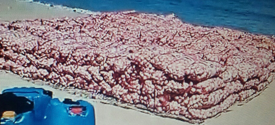 Según un video enviado a este redactor por lugareños de allí, el cargamento de ajo introducido al país de contrabando vía marítima, fue colocado sobre la arena a menos de dos metros de la embarcación que fue dejada varada en la orilla de dicha playa.