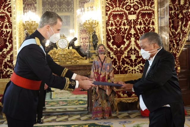 MADRID.- El rey Felipe VI de España recibió este jueves las cartas credenciales del nuevo embajador de República Dominicana en España, Juan Bolívar Díaz.