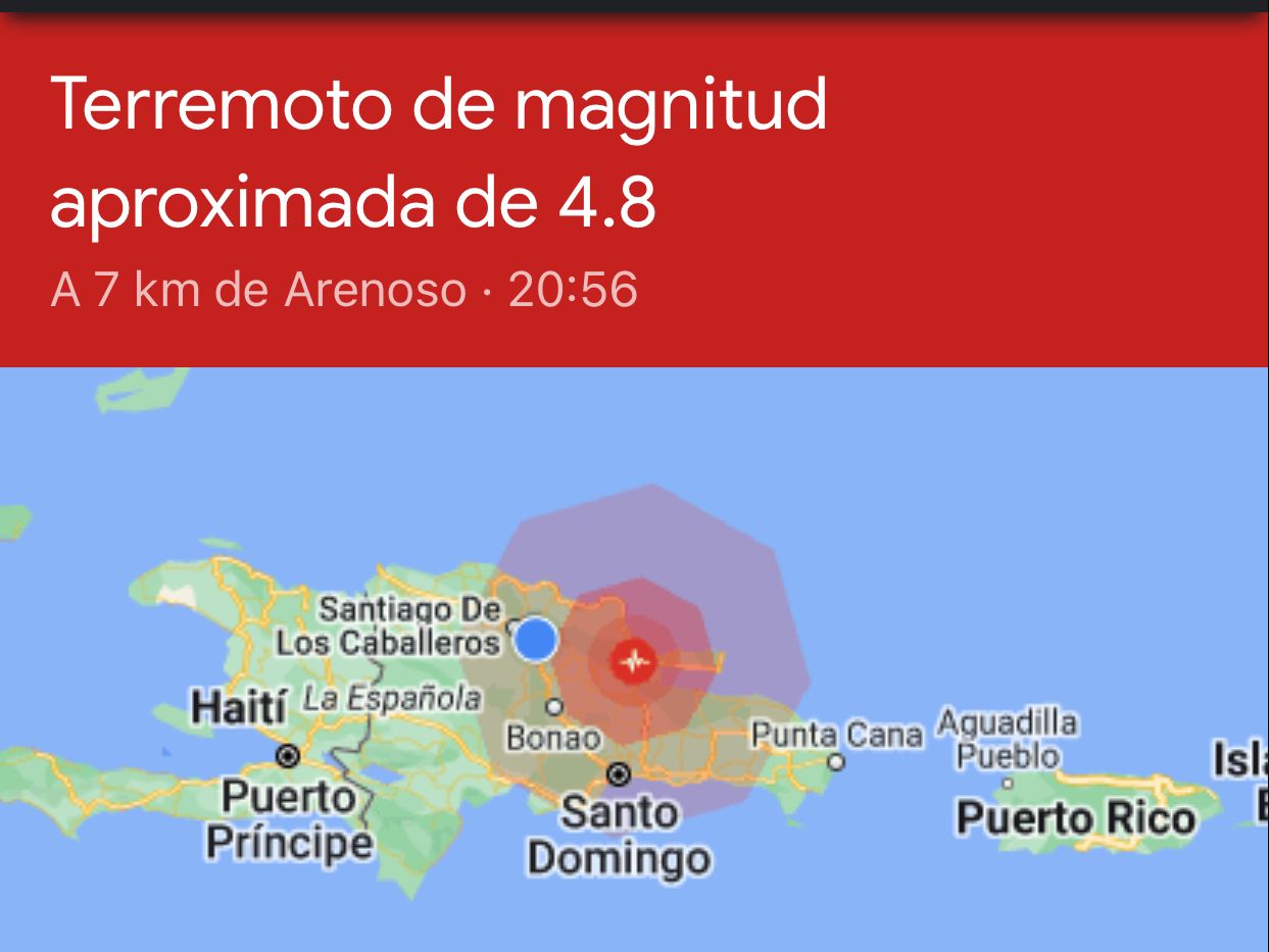 Un temblor de magnitud 4.8 se sintió este lunes en la noche en distintas poblaciones de la República Dominicana