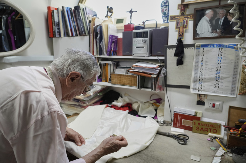 A sus 86 años, Raniero Mancinelli ha vestido a los últimos tres papas y prepara ya el traje del próximo pontífice en una sastrería única en el mundo, que puede presumir también de vestir a la curia que formará parte del próximo cónclave, reunido desde el 7 de mayo para elegir al sucesor de Francisco.
